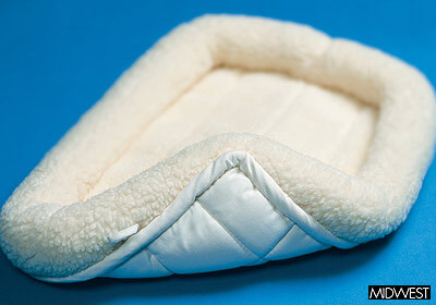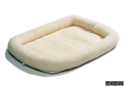 Midwest are better known for making good quality dog cages. But they sell these 'Quiet Time' pet beds as accessories. For example, the 48" bed will be a good fit for the 48" dog cage. Made from synthetic sheepskin.